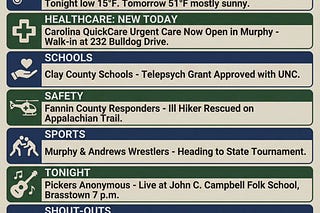 New Cherokee County sheriff leadership, Fannin County academic honors, Hayesville water outage notice, and a Soundcheck Friday feature on local…