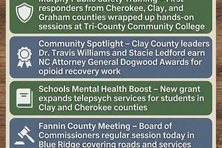 Community Spotlight Tuesday shines on local training, recovery heroes, school mental health help, and county government across our mountains.
